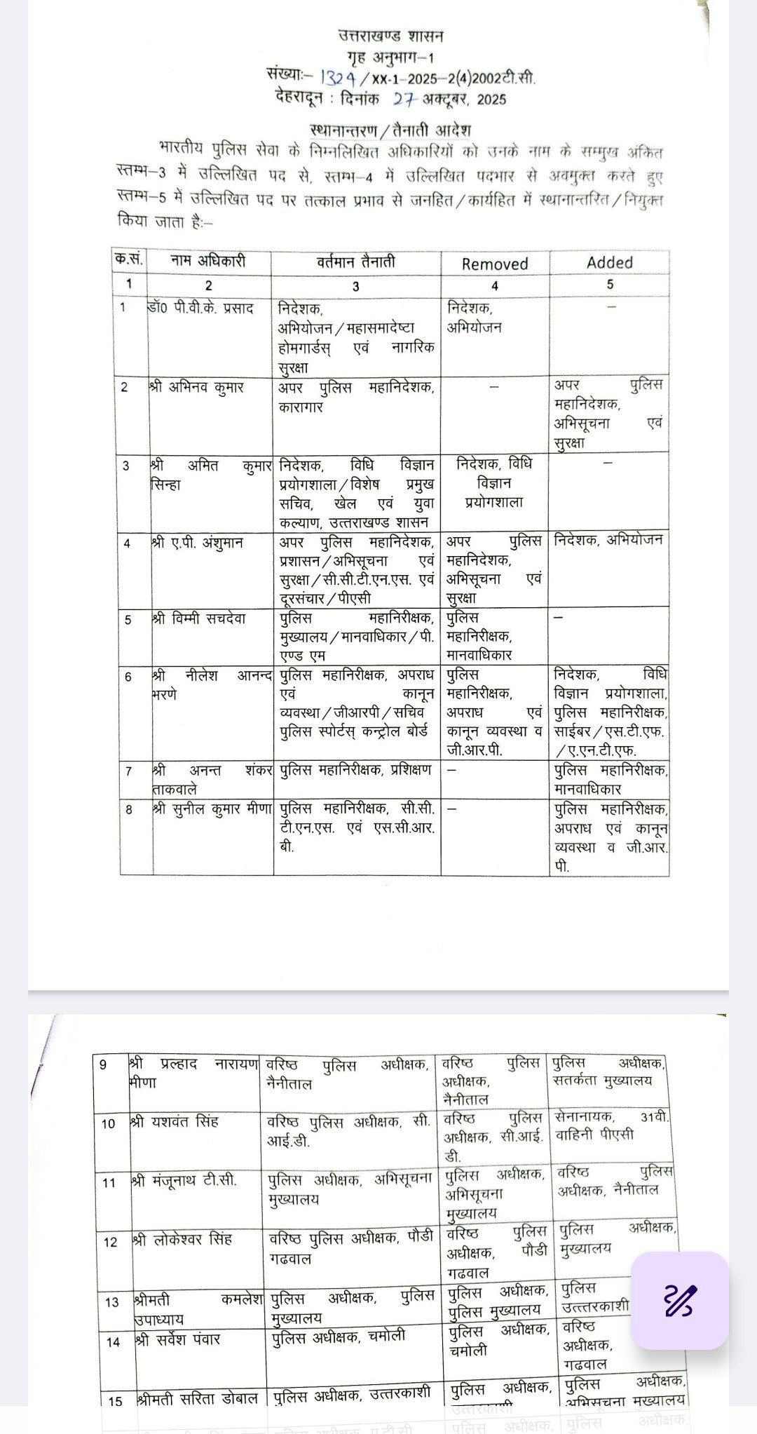 उत्तराखंड में 16 IPS और 8 PPS अधिकारियों के हुए तबादले