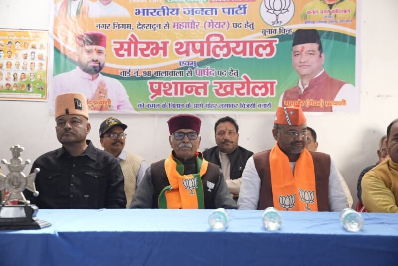 कहा आज भारतीय जनता पार्टी ने महानगर देहरादून के लिए महापौर प्रत्याशी के रूप में सौरभ थपलियाल को चुना है। हम सब जानते हैं भारतीय जनता पार्टी की सरकार में समय-समय पर हमारे सैनिकों और पूर्व सैनिकों के लिए कई योजनाओं के माध्यम से लाभ देने का काम किया है। मैं उम्मीद करता हूं कि आप सब लोग अपना पूर्ण आशीर्वाद सौरभ थपलियाल को देंगे और अधिक से अधिक मतों के साथ इनको विजई बनाएंगे।