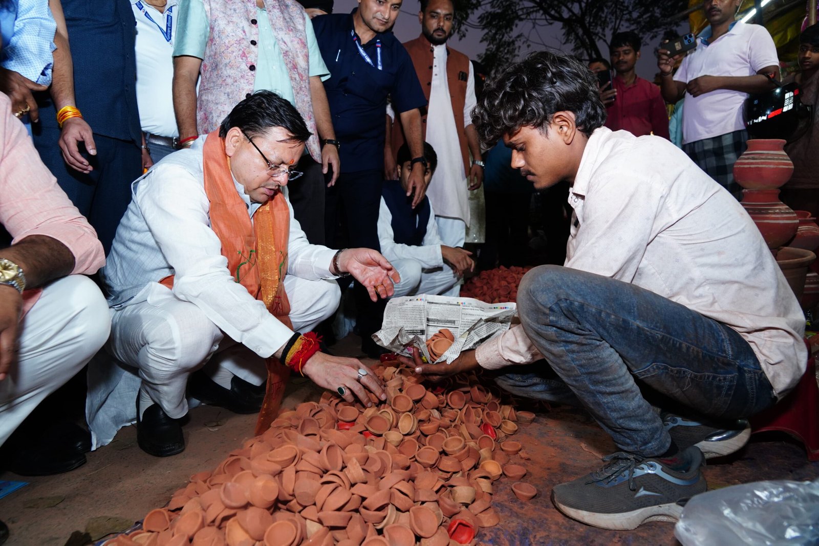 मुख्यमंत्री पुष्कर सिंह धामी ने दीपावली पर्व के अवसर पर आज देहरादून स्थित चकराता रोड की स्थानीय दुकानों से मिट्टी के दीये, बर्तन एवं अन्य पारंपरिक स्वदेशी सामानों की खरीदारी की। इस अवसर पर मुख्यमंत्री ने स्थानीय दुकानदारों, कुम्हारों और हस्तशिल्पकारों से संवाद भी किया तथा उन्हें पारंपरिक कलाओं को आगे बढ़ाने के लिए प्रोत्साहित किया।