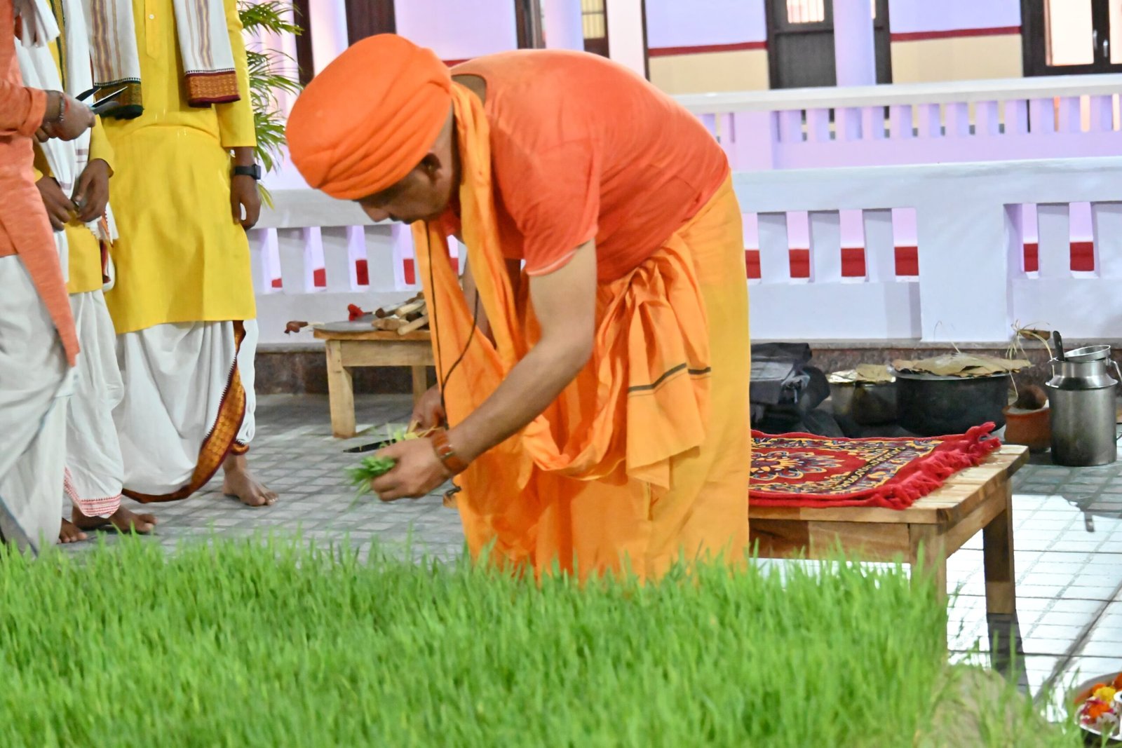 देर शाम मंदिर के शक्तिपीठ में उन्होंने गौरी गणेश पूजन, वरुण पूजन, पीठ पूजन, नवग्रह पूजन, दुर्गा सप्तशती पाठ, यंत्र पूजन, भगवान राम-सीता-लक्ष्मण व श्रीकृष्ण पूजन सहित अनेक धार्मिक अनुष्ठान पूरे किए। अंत में हवन कर जौ के पौधों की बलि देकर लोकमंगल की प्रार्थना की गई।