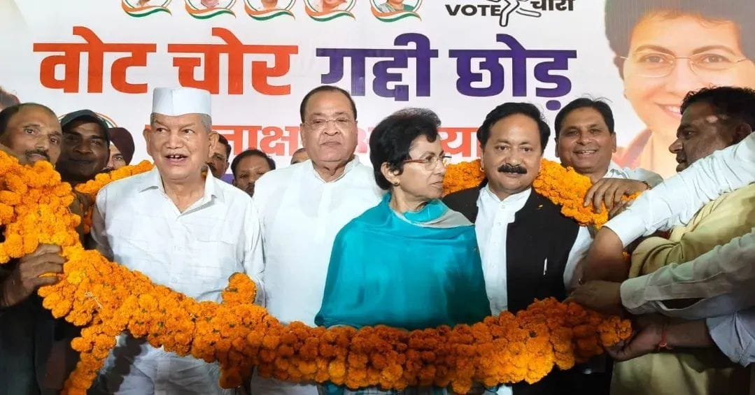 पूर्व मुख्यमंत्री हरीश रावत ने कहा कि भाजपा ने लोकतंत्र के पवित्र मंदिर को अपवित्र किया है। सत्ता पाने के लिए जनता के जनादेश से छेड़छाड़ लोकतंत्र की आत्मा पर प्रहार है। ‘वोट चोर गद्दी छोड़’ अभियान जनता की चेतना को जगाने और लोकतांत्रिक मूल्यों की पुनर्स्थापना का संदेश है। अब जनता जाग चुकी है और भाजपा के झूठे नैरेटिव को स्वीकार नहीं करेगी।