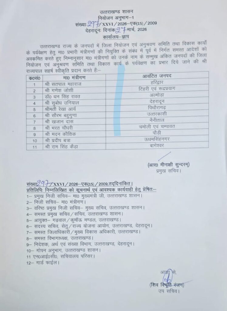 उत्तराखंड में मंत्रियों को जिलों का प्रभार: हरिद्वार से देहरादून तक किस मंत्री को मिली जिम्मेदारी